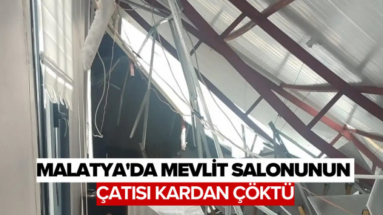 Edinilen bilgilere göre, öğle saatlerinde Akçadağ ilçesi Develi Mahallesi'ndeki mevlit salonunun prefabrik çatısı yoğun kar yüküne dayanamayarak çöktü. Şans eseri olayda yaralanan olmazken salon kullanılamaz hale geldi.