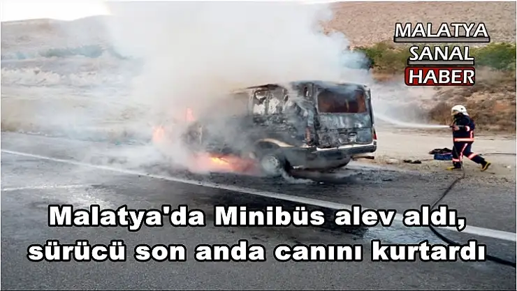 Malatya-Kayseri karayolunda seyir halindeki bir minibüs aniden alev aldı, sürücü son anda araçtan inerek canını kurtardı.