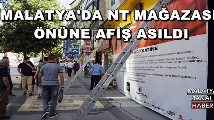 Malatya'da NT mağazası önüne Kaynak Holding Yönetim Kurulu tarafından kamuoyunu bilgilendirmek amacıyla afiş asıldı.
