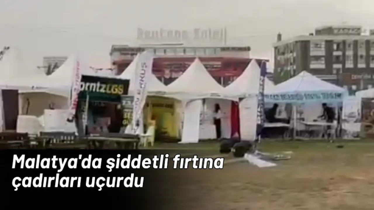 Malatya'da etkili olan şiddetli fırtına, Yeşilyurt ilçesindeki 100. Yıl Kent Parkı'nda kurulan bazı atölye çadırlarının uçmasına neden oldu.