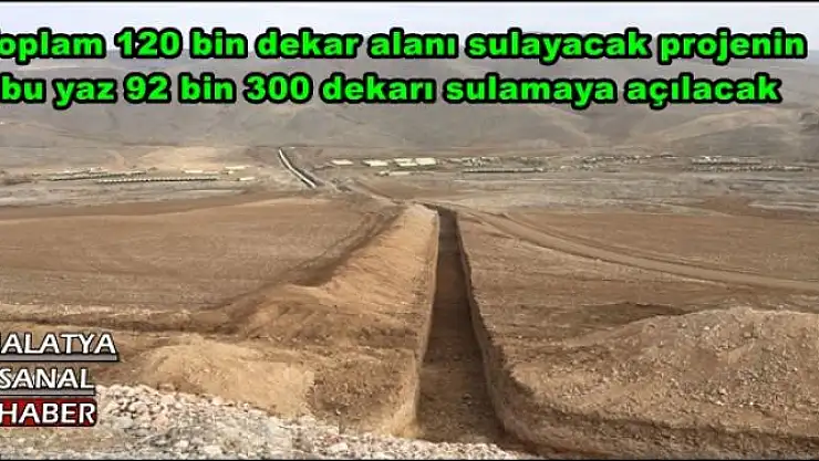 Yüzde 67 fiziki gerçekleşme sağlanan ve toplam 120 bin dekar alanı sulayacak projenin, 92 bin 300 dekarı sulayacak bölümü bu sulama mevsimine yetiştirilecek.