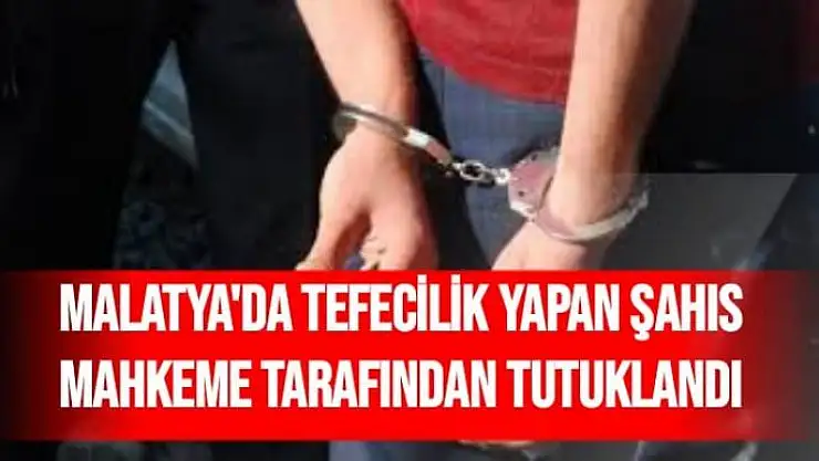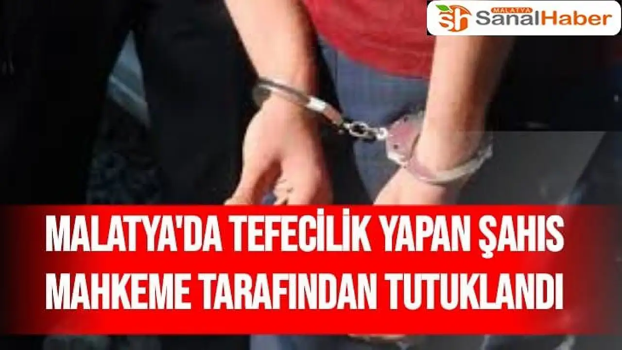 Malatya ve çevre illerde tefecilik yaptığı gerekçesiyle gözaltına alınan 1 kişi mahkeme tarafından tutuklanarak cezaevine gönderildi.