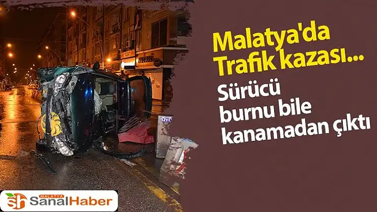 Malatya´da sürücüsünün direksiyon hakimiyetini kaybetmesi sonucu yan yatan otomobilin sürücüsü kazayı burnu bile kanamadan atlattı.