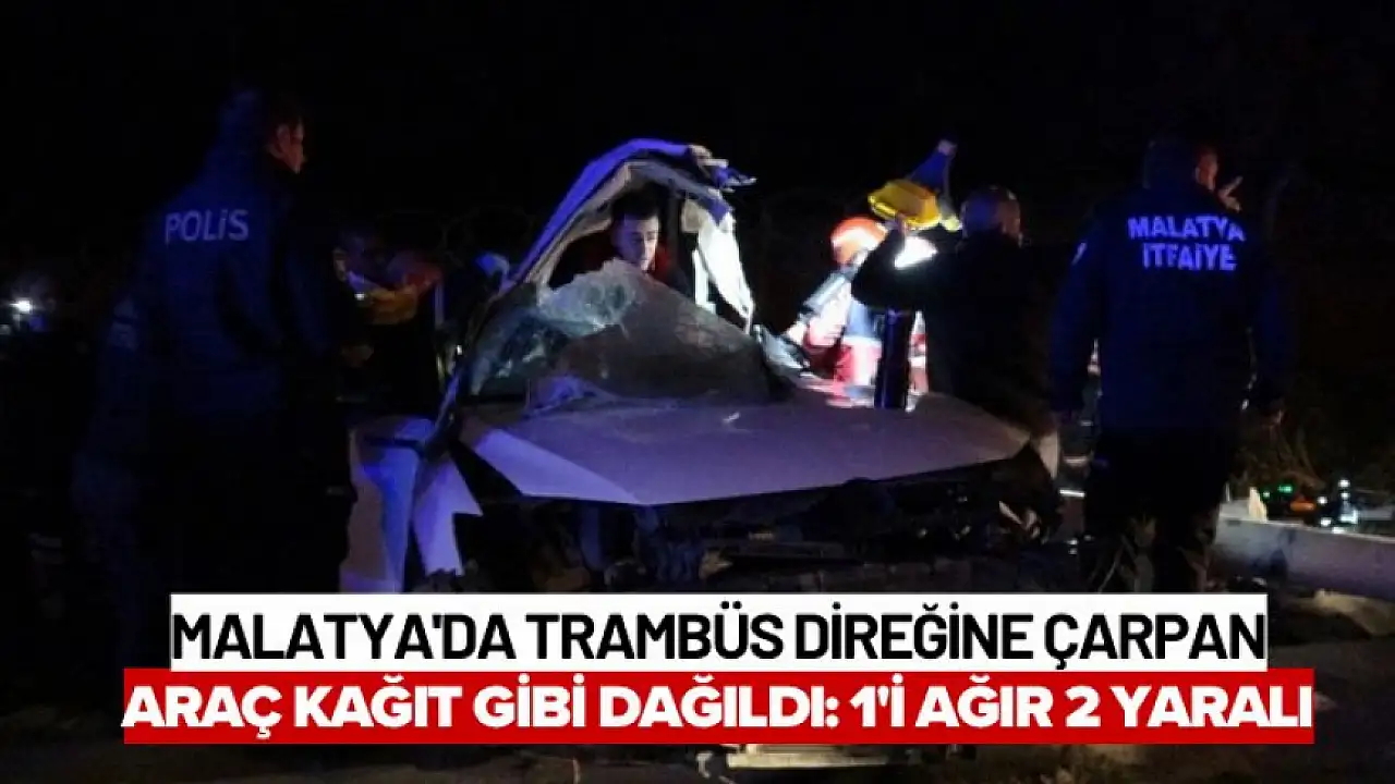 Malatya'da trambüs direğine çarpan araç kağıt gibi dağıldı: 1'i ağır 2 yaralı