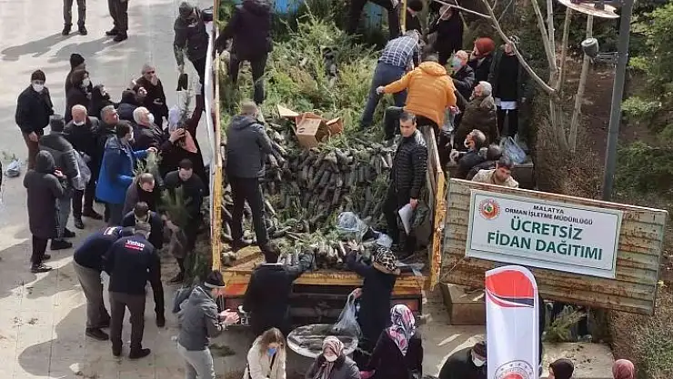 Malatya Orman İşletme Müdürlüğü tarafından vatandaşlara ücretsiz fidan dağıtımı yapıldı. Ücretsiz dağıtılan fidanlara vatandaşlar yoğun ilgi gösterdi.