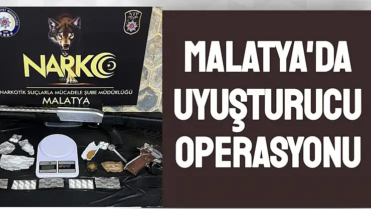 Malatya´da İl Emniyet Müdürlüğü Narkotik Şube ekiplerince 3 aylık takip sonucunda yapılan eş zamanlı operasyonda 14 zanlı gözaltına alındı. Operasyonda 54 uyuşturucu hap, 13.58 gram uyuşturucu madde, 1 pompalı tüfek, 2 tabanca ve 1 hassas terazi ele geçirildi.