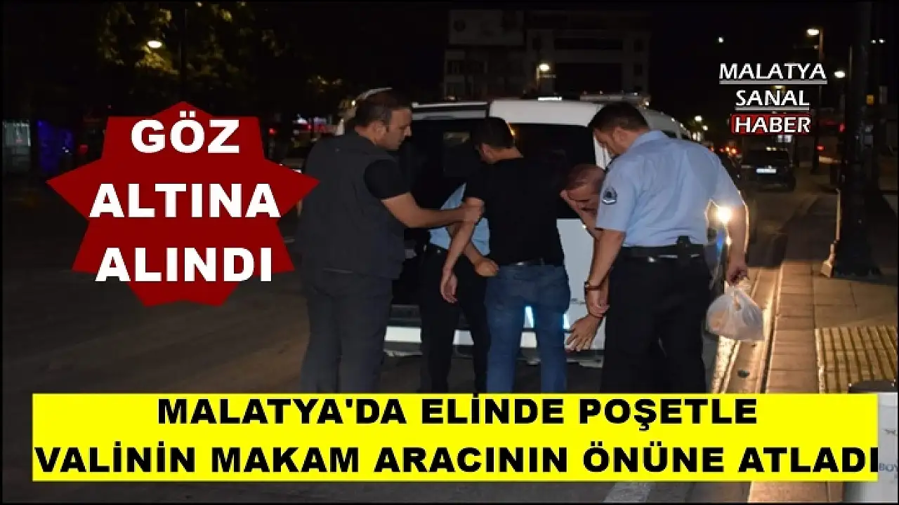 Malatya Valisi Ali Kaban’ın hareket halindeki makam aracının önüne atlayan şahıs polis ekiplerince gözaltına alındı.