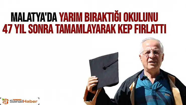 Malatya´da yaşayan 63 yaşındaki emekli bankacı ekonomik nedenlerle yarım bıraktığı okulunu 47 yıl sonra tamamlayarak kep fırlattı.Mal