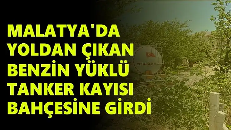 Malatya´da sürücüsünün direksiyon hakimiyetini kaybettiği benzin yüklü tanker kayısı bahçesine girdi.