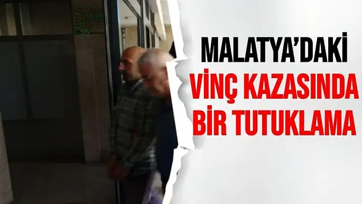 Malatya´da bir inşaat sahasında vincin devrilmesi sonucu 3 kişinin hayatını kaybettiği bir kişinin de ağır yaralandığı olayla ilgili olarak gözaltına alınan 3 kişiden biri tutuklandı.