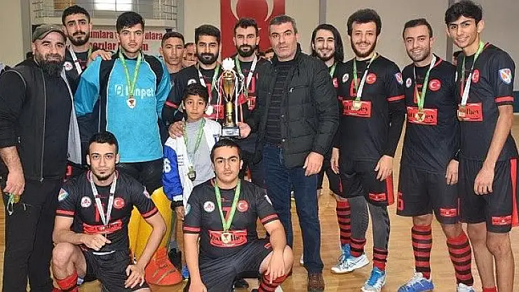 Ligde oynanan son maçın ardından düzenlenen kupa töreninde üçüncü olan Nizip Mehmet Akif Ersoy Halk Eğitim Merkezi’nin kupa ve madalyalarını Yenişehir Spor Salonu Tesis Amiri Mehmet Aksu,