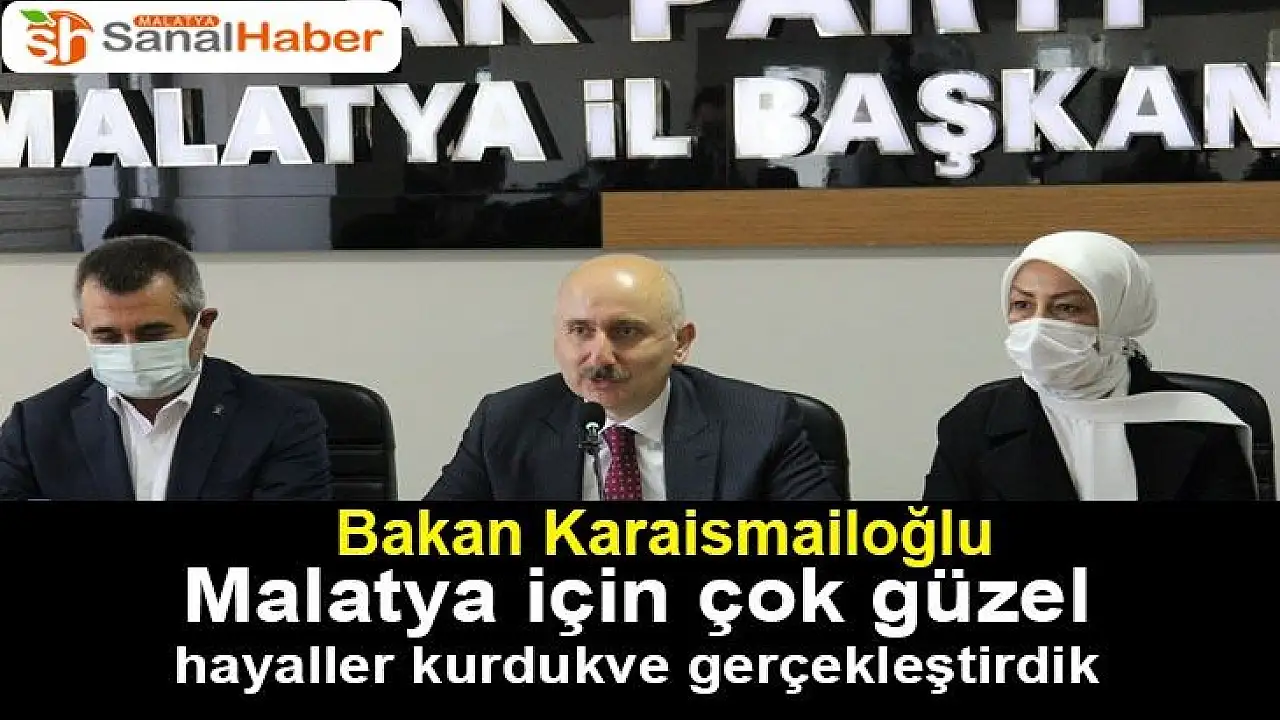 Ulaştırma ve Altyapı Bakanı Adil Karaismailoğlu, Malatya´daki temasları kapsamında AK Parti Malatya İl Teşkilatını ziyaret etti. Burada konuşan Karaismailoğlu, "Türkiye ve Malatya 18 yılda gerçek hizmet siyasetini gördü, dev projeler ile tanıştı" dedi.