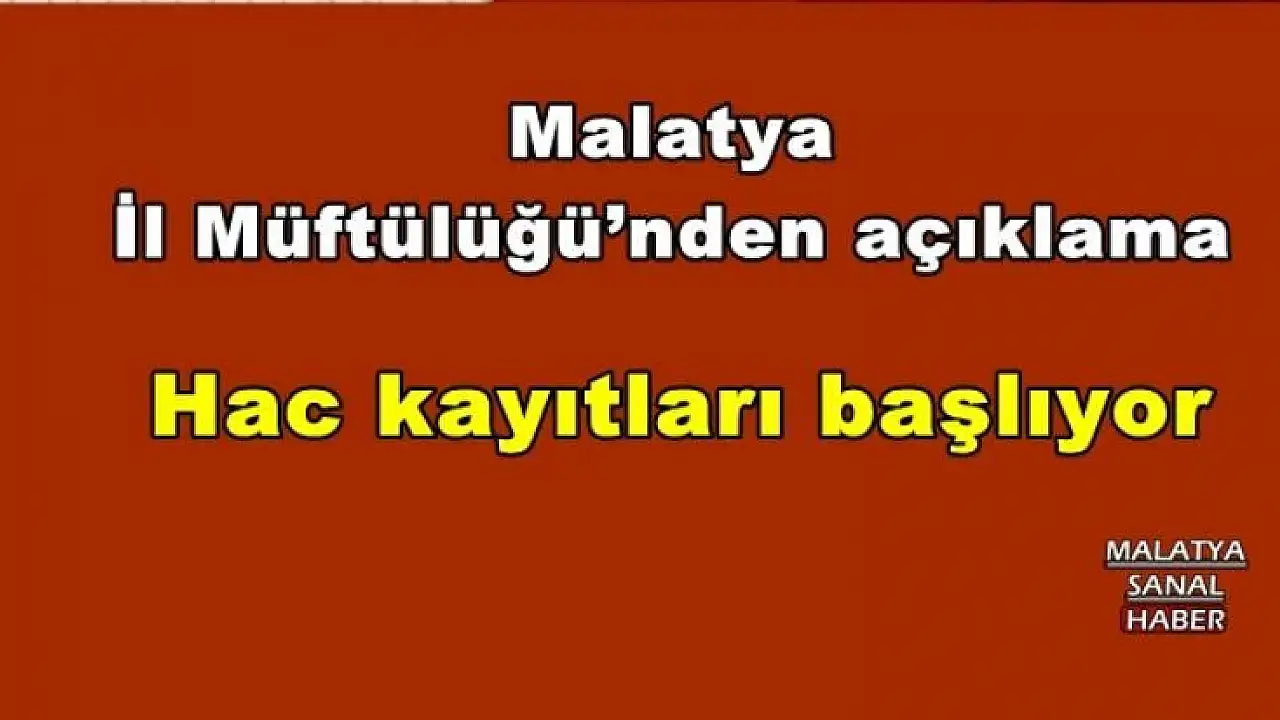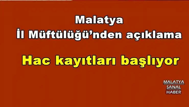 Malatya İl Müftülüğü’nden yapılan açıklamada 2017 yılında hacca gitmek üzere ‘İlk defa kayıt’ yaptırmak isteyenlerin ilgili bankalara 20 TL ön kayıt ücretini yatırdıktan sonra müracaatlarını Diyanet İşleri Başkanlığı’na ve müftülüklere elektronik ortamda yada müftülüklere yapabilecekleri belirtildi.