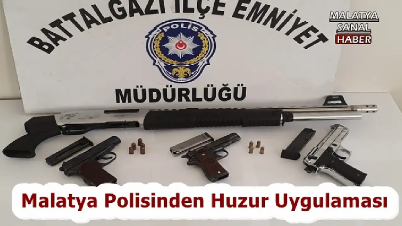 Malatya’da gerçekleştirilen Türkiye Güven Huzur Uygulaması-5 kapsamında aranan 14 şahsın yanı sıra ruhsatsız silahlar ve esrar maddesi ele geçirildi.