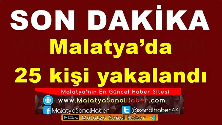 Konuyla ilgili olarak Malatya İl Emniyet Müdürlüğünden yapılan yazılı açıklamada, polis uygulamalarında aranılan 25 kişinin yakalandığı belirtildi. Açıklamada, haklarında adli işlem yapılan ve mahkemeler tarafından hüküm verilen 25 kişinin, 9-15 Ekim tarihleri arasında Asayiş Şube Müdürlüğüne bağlı ekipler tarafından yakalanarak, adli mercilere teslim edildiği ifade edildi.