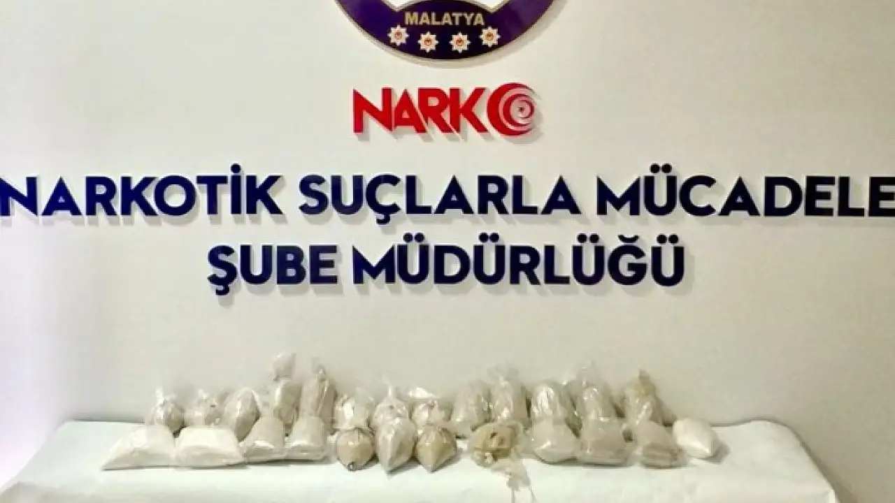Malatya Emniyet Müdürlüğü Narkotik Suçlarla Mücadele Şube Müdürlüğü ekipleri tarafından şehir girişinde yapılan yol kontrolleri sırasında şüphe üzerine durdurulan bir araçta arama yapıldı. Yapılan detaylı aramalarda araç içerisine zulalanmış vaziyette 21 paket halinde 13 kilogram eroin ele geçirildi.