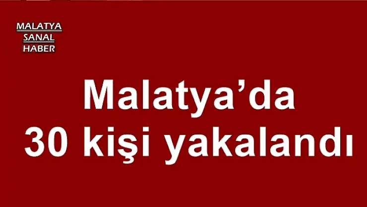 Konuyla ilgili Malatya İl Emniyet Müdürlüğünden yapılan yazılı açıklamada, polis uygulamalarında aranan 30 kişinin yakalandığı belirtildi. Açıklamada, haklarında adli işlem yapılan ve mahkemeler tarafından hüküm verilen 30 kişinin, 30 Ekim ile 5 Kasım tarihleri arasında Asayiş Şube Müdürlüğüne bağlı ekipler tarafından yakalanarak, adli mercilere teslim edildiği ifade edildi.