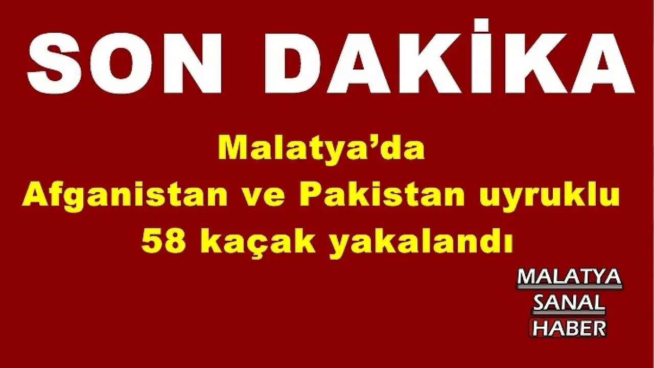 Malatya İl Emniyet Müdürlüğü KOM Şube Müdürlüğüne bağlı ekipler, Elazığ yolu uygulama noktasında Van ve Diyarbakır'dan gelen 2 minibüsü durdurdu. Minibüslerde kaçak yollarla ülkeye giriş yaptığı tespit edilen 16'sı Pakistan, 42'si Afganistan uyruklu toplam 58 şahıs ile 4 araç şoförü yakalandı. Yabancı uyruklu 58 şahıs 5682 Pasaport Kanununa Muhalefetten yasal işlem yapılarak, İl Göç İdaresine teslim edildi.