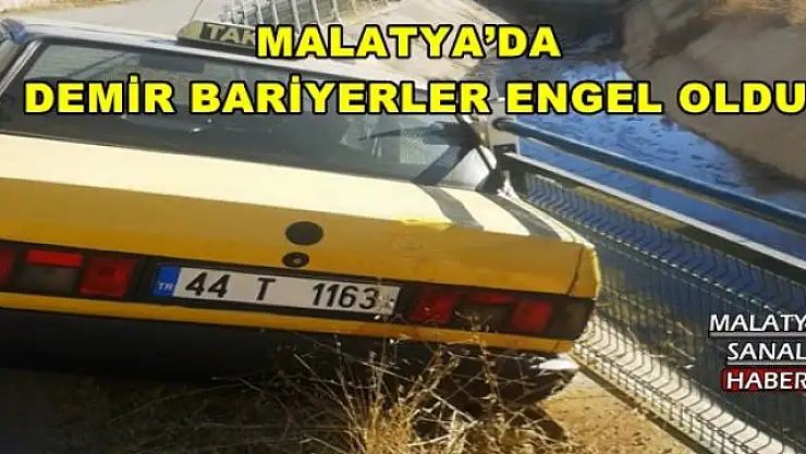 Malatya’da direksiyon hakimiyetini kaybeden bir taksi, sulama kanalına düşmekten demir bariyerler sayesinde kurtuldu.