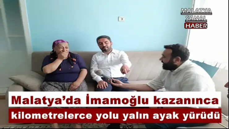Malatya’da “İmamoğlu kazanırsa yalın ayak partiye kadar gelip tebrik edeceğim” diyen Sakine Özkara adlı bir kadın, Ekrem İmamoğlu seçimi kazanınca sözünü tuttu ve kilometrelerce yolu yalın ayak yürüyerek CHP Malatya İl Başkanlığa geldi.