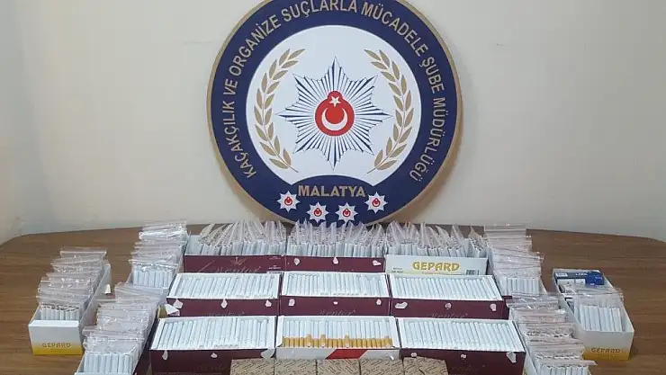Malatya İl Emniyet Müdürlüğü Kaçakçılık ve Organize Suçlarla Mücadele Şube Müdürlüğü görevlilerince kaçakçılık suçlarını önlemeye yönelik 4 ayrı operasyon gerçekleştirildi. Operasyonlar sonucunda 8 bin 580 dal içi tütün doldurulmuş makaron, 726 adet gümrük kaçağı cinsel içerikli ürün, 360 deste gümrük kaçağı sigara sarma kağıdı, 54 şişe el yapımı boğma rakı, 46 adet gümrük kaçağı elektronik sigara ve likiti ele geçirildi.