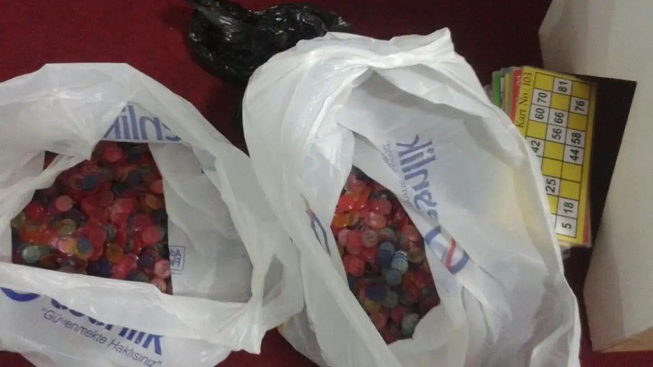 Bahse konu iş merkezine yapılan baskında içeride yasa dışı olarak tombala oynandığı tespit edilirken, masa üzerlerinde tombala oynama amaçlı çay pulları, 1 adet televizyon, tombala makinası ve pinpon toplarına el konuldu.