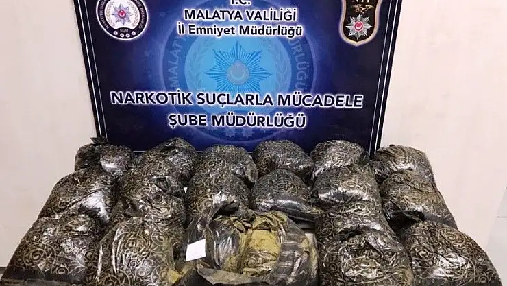 Malatya İl Emniyet Müdürlüğü Narkotik Suçlarla Mücadele Şube Müdürlüğü ekipleri tarafından şehir giriş ve çıkışlarında yapılan yol uygulaması esnasında durumundan şüphelenilerek durdurulan bir araçta arama yapıldı. Narkotik köpeğinin tepki vermesi üzerine araçta yapılan detaylı aramalarda çeşitli bölmelere saklanmış vaziyette toplam 10 kilo 230 gram sentetik kannabinoid maddesi ele geçirildi.