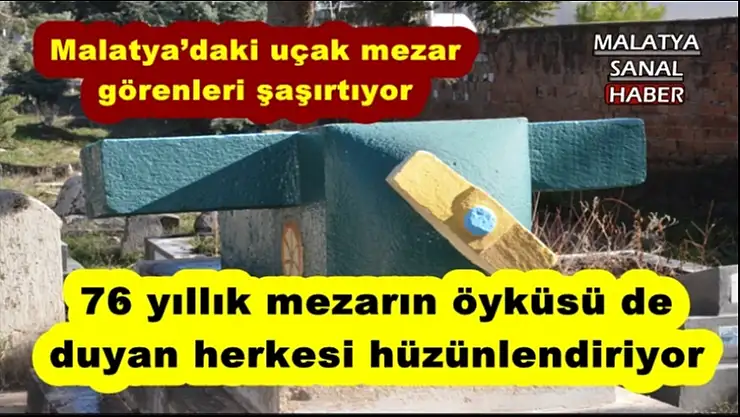 Malatya’da bir mezarlıkta bulunan uçak şeklindeki mezar görenleri şaşırtıyor. 76 yıllık mezarın öyküsü de duyan herkesi hüzünlendiriyor.