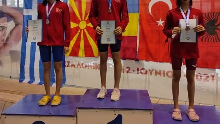 Uluslarası yüzme şampiyonasına katılan Malatyalı iki milli yüzücü Burcunaz Narin, yüzme 200 metre serbest de birinci olarak altın madalyanın