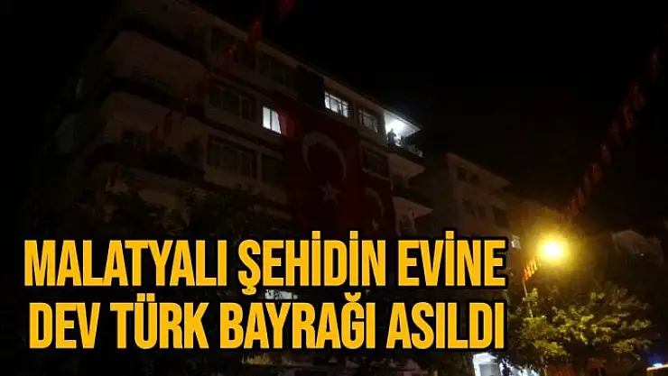Malatyalı şehidin evine dev Türk bayrağı asıldı