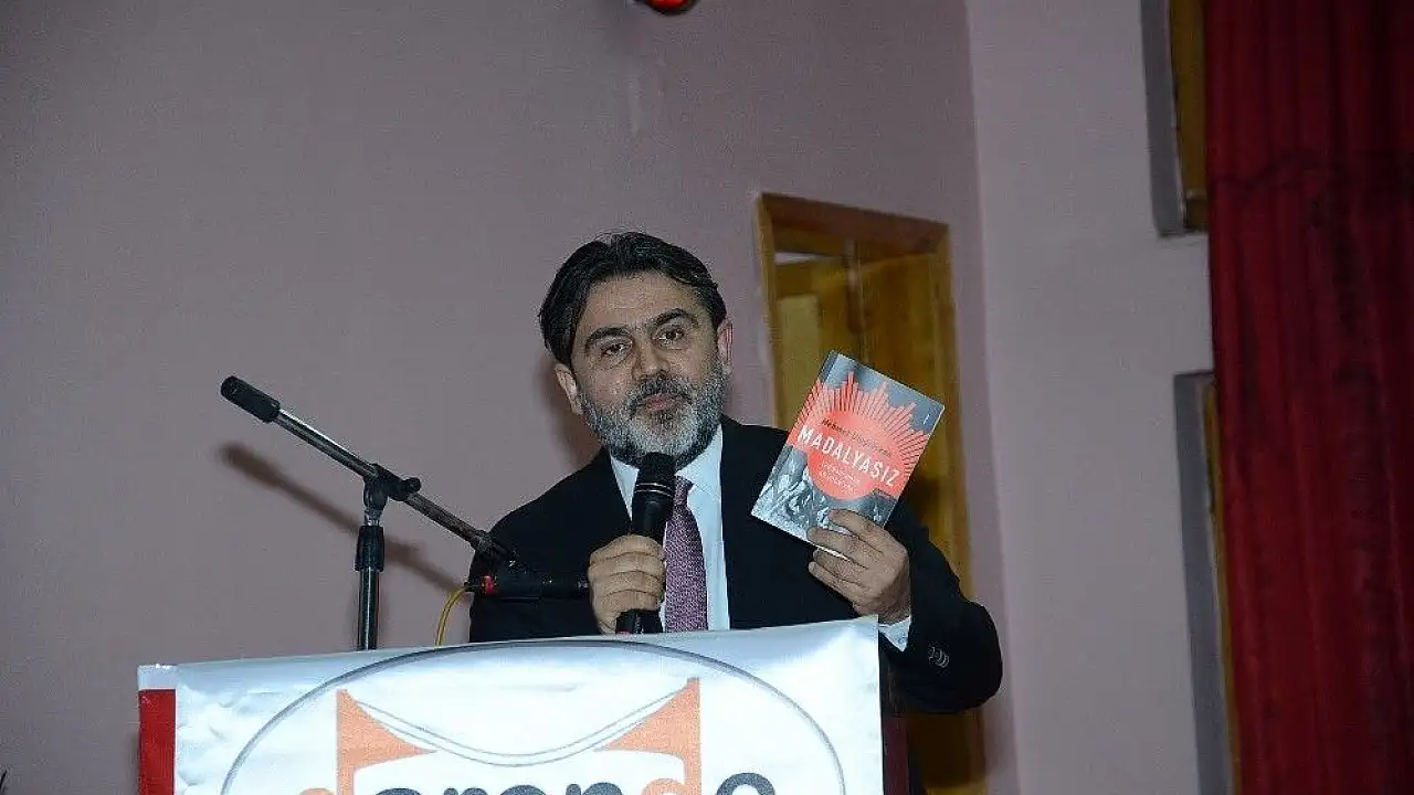 Büyük ilgi gören etkinlikte Mehmet Uluğtürkan, Mehmet Ağa ve adamlarının gönüllü olarak Mustafa Kemal Paşa’nın emrine girdiklerini, verilen emir üzerine Fransız işgaline karşı gerçekleşen Maraş Savunması’nda görev aldıklarını anlattı. Yeniceli Mehmet Ağa’nın gönüllü savaşçılara “Şehit olursanız, ailelerinize 40 yıl boyunca ben bakacağım” dediğini, kendisi ve ölümünden sonra çocukları ve torunlarının bu sözü tuttuğunu vurgulayan Uluğtürkan, bunun dünyada emsali görülmemiş bir vefa olduğunu kaydetti. Mehmet Uluğtürkan, Yeniceli Mehmet Ağa’nın savaştan sonra iftira sonucu idama mahkum edildiğini, Kılıç Ali’nin müdahalesiyle gerçeğin ortaya çıktığını belirterek, “Mehmet Ağa, ilerleyen yıllarda teklif edilen İstiklal Madalyası’nı ‘Ben bunları madalya için değil vatan için yaptım’ diyerek reddediyor. Kendisinin hayatını anlattığımız romana bu nedenle ‘Madalyasız’ adını verdik” dedi.
