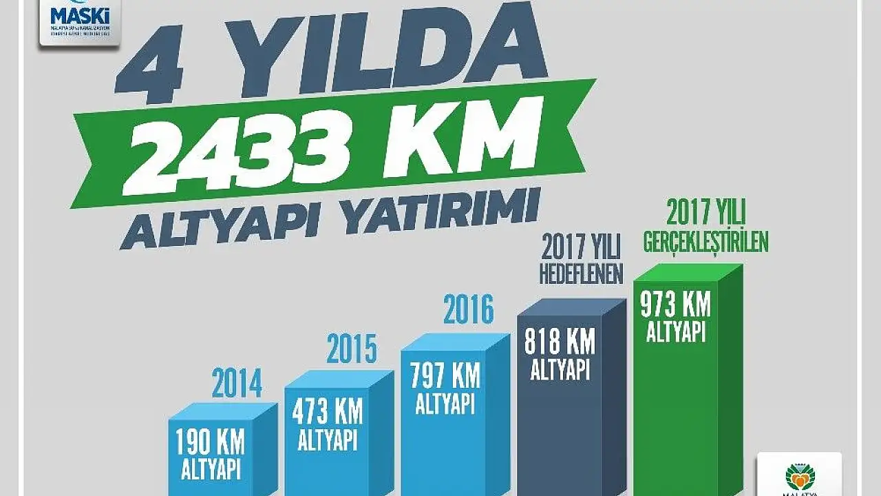 Malatya Büyükşehir Belediyesi Su ve Kanalizasyon İdaresi (MASKİ) Genel Müdürlüğü son 4 yılda 305 milyon TL tutarında 2 bin 433 kilometrelik altyapı çalışmaları gerçekleştirdi.