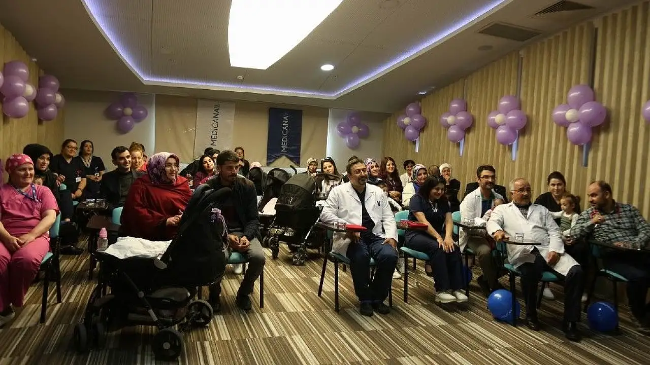 Hastane konferans salonunda düzenlenen etkinlikte Medicana Sivas Hastanesi’nde prematüre doğum ile dünyaya gelmiş aldığı tedavi ile sağlıklı bir yaşama kavuşan bebeklerin aileleri ile yeni doğan uzman hekimi, yeni doğan servis hemşireleri ve hastane yönetimi bir araya geldi.