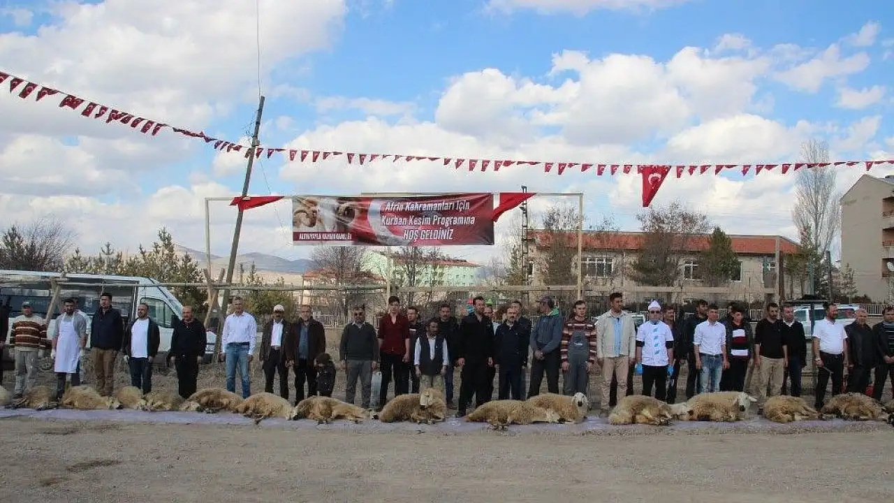 Sivas’ın Altınyayla ilçesinde Suriye’nin Afrin bölgesinde devam eden Zeytin Dalı Harekatı’nda görev alan askerler için 58 adet küçükbaş hayvan kurban edildi.