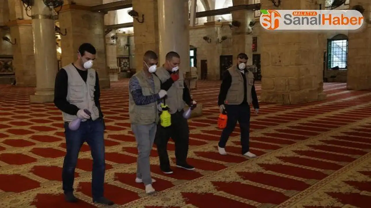 Filistin’de korona virüsünün yayılmaması amacıyla Mescid-i Aksa’da sterilizasyon çalışmaları yapıldı.