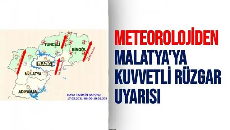 Meteoroloji, Elazığ, Malatya, Bingöl, Tunceli ve Adıyaman için saatte 40 ile 70 kilometre arasında esen kuvvetli rüzgar beklendiğini bildirdi, 3 il için de yağış uyarısı yaptı.