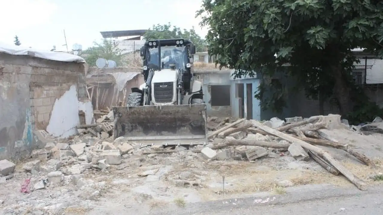 Mahallelerin huzur ve güvenliği için Adıyaman Belediyesi Fen İşleri Müdürlüğü ekiplerince metruk ev ve binaların yıkımları, iş makineleriyle gerçekleştirilirken polis ekipleri ise yıkım esnasında önlem alıyor.