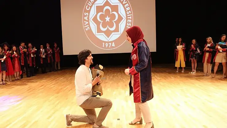 Cumhuriyet Üniversitesi Diş Hekimliği Fakültesi mezuniyet töreni ilginç bir evlenme teklifine sahne oldu.