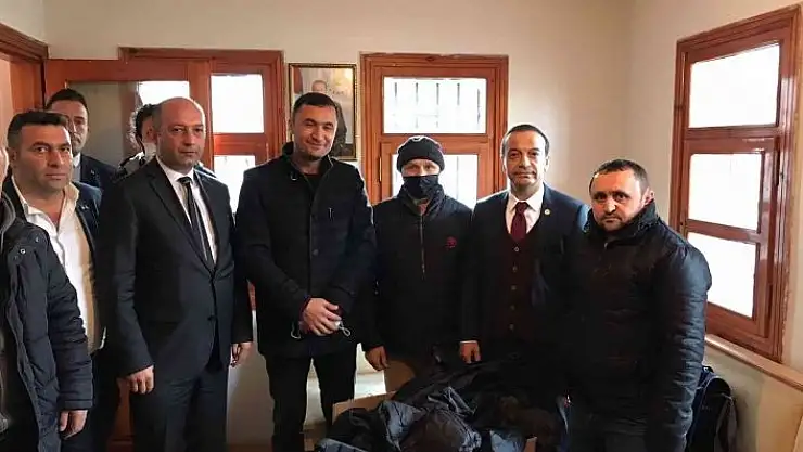 MHP Sivas Milletvekili Ahmet Özyürek ihtiyaç sahibi çocuklara teslim edilmek üzere mahalle muhtarlıklarına kışlık mont ve bot dağıttı.