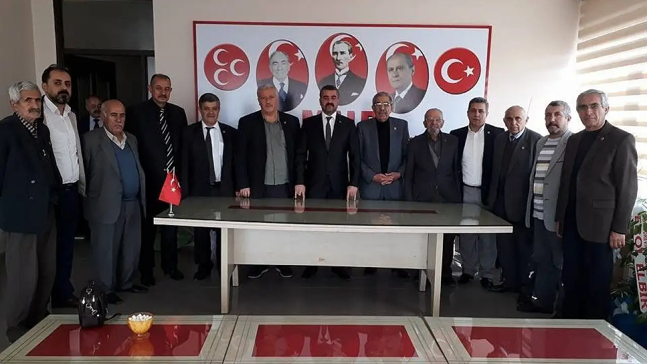 Türkiye Muhtarlar Derneği Malatya Şube Başkanı Mustafa Eren ve yönetimi, MHP (Milliyetçi Hareket Partisi) İl Başkanı Bülent Avşar’ı makamında ziyaret ederek hayırlı olsun dileklerinde bulundu.