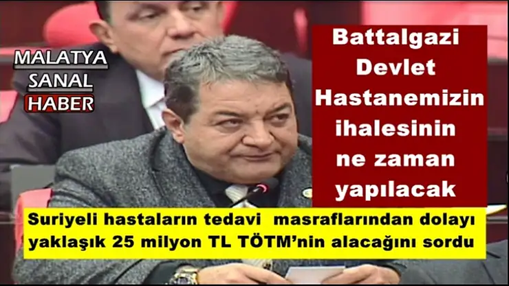 Fendoğlu ayrıca, Malatya’da ihalesi bir kaç kez iptal edilen ve bir belirsizliğe dönüşen Battalgazi Devlet Hastanesi’nin de yapımının ne durumda olduğunu sorarak, “Malatya ilimizde ihalesi iptal olan Battalgazi Devlet Hastanemizin ihalesinin ne zaman yapılacağı ve hastanenin ne kadar sürede bitirileceği belli midir” diye sordu.