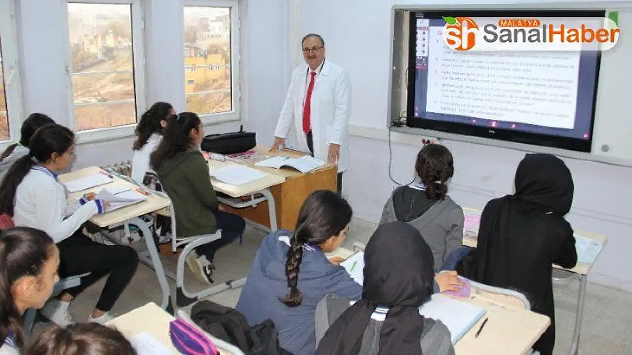 Adıyaman Milli Eğitim Müdürü Ahmet Alagöz, beyaz önlük giyerek sınıfta ders işledi.