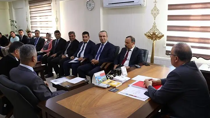 Daha sonra Ahmet Alagöz, Şube Müdürü Abdurrahman Çelik, İlçe Milli Eğitim Müdürü Talip Yücel ile birlikte okul müdürleriyle İlçe Milli Eğitim Müdürlüğünde toplantı yaptı.