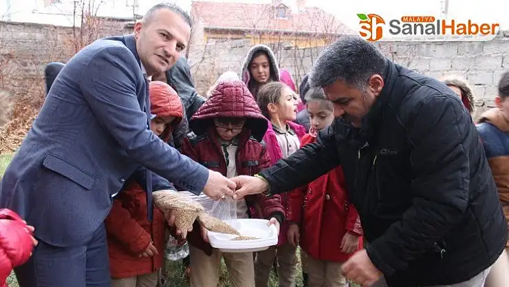 Minik öğrenciler “sevgi” konulu değerler eğitimi çalışması kapsamında yiyecek bulmakta zorlanan sokak hayvanları için tabldotlara hazırladıkları yem, kedi-köpek maması, süt ve suları okul çevresine bıraktı.