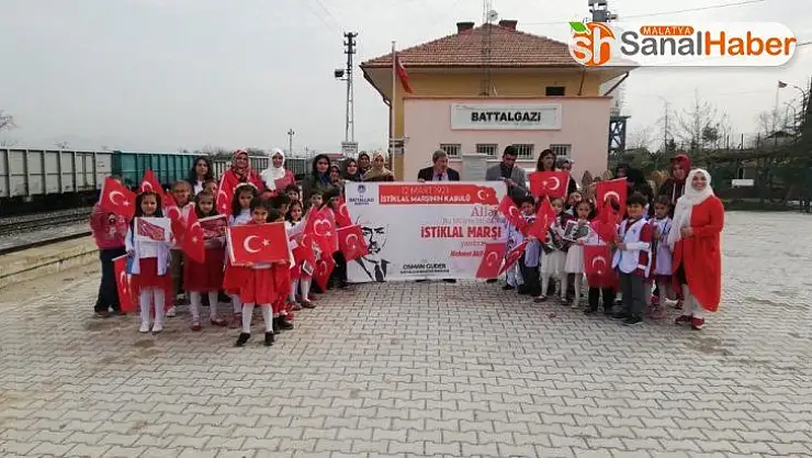 Battalgazi Belediye Başkanı Osman Güder, yaptığı açıklamada, “İstiklal ve istikbalimizin, milli mücadelemizin sembolü olan İstiklal Marşımızın kabulünün 99. yıl dönümünü bugün öğrencilerimizle kutluyoruz. Minik çocuklarımız trenle Battalgazi’den merkez gara kadar yolculuk yaptılar ve biz çocuklarımıza hem bugünü hatırlatmak ve hem de bugünü kutlamak istedik. İstiklal ve istikbal mücadelesinde o günkü ecdadımızın kadın, erkek, yaşlı ve çocuk demeden vermiş oldukları milli mücadelenin Mehmet Akif Ersoy tarafından dile getirilişi ve o gün gerek ülke genelinde olsun gerekse bugüne yansıması açısından vermiş olduğu mücadeleyi, Milli şairimiz Mehmet Akif’imiz istiklal marşımızla dile getirmiştir. Kendi ifadesi ile ‘Allah istiklal marşını bir daha yazdırmasın’ demişti. Onu söylerken ecdadın başına gelen olayların bir daha Türkiye’mizin yaşamaması adına bunu ifade etmişti. Esinlendiği kaynak manevi değerlerimizdir. Özellikle Peygamber Efendimizin Mekke’den Medine’ye hicret ederken mağarada saklandığında Hz. Ebubekir’in telaşı üzerine ‘Korkma, Allah bizimle beraberdir’ demesinden ilham alan Mehmet Akif’imiz de o gün İstiklal Marşımızı yazmıştır. 99 yıl önce TBMM’de kabul edilmiştir. Biz de verilen bu milli mücadeleye sahip çıkma adına, bağımsızlığımızın sembolü olan İstiklal Marşımızı ilelebet koruma ve kollama adına bugün bu etkinliği düzenlemiş olduk. Akif’in deyimiyle Allah o günleri tekrar bu millete yaşatmasın” dedi.