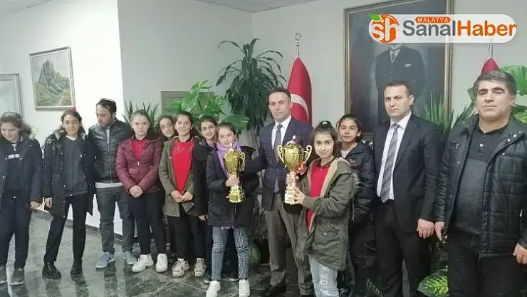 İlçe Milli Eğitim Müdürü Halil Tünçmen, okul idarecileri ve takım antrenörünün de katıldığı ziyarette Kaymakam Doğans, şampiyon öğrencileri tebrik etti.