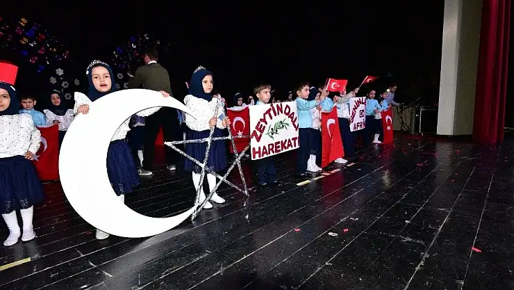 Fahri Kığılı Kuran Kursunda eğitim alan 4-6 yaş arası minik çocuklar düzenlenen törenle diplomalarına kavuştu. Yoğun katılımla gerçekleşen törenin sonunda minik öğrenciler Afrin operasyonunu yürüten kahraman Mehmetçiğe destek için anlamlı bir gösteri gerçekleştirdi. Duygusal anların yaşandığı gösteride minikler çalınan müzik eşliğinde Türk Bayrağı ve “Seninleyiz Afrin” yazılı pankart açarak Mehmetçiğe destek oldu. Küçük öğrencilerin yaptığı davranış herkesin takdirini toplarken izleyiciler, öğrencileri uzun süre ayakta alkışladı.