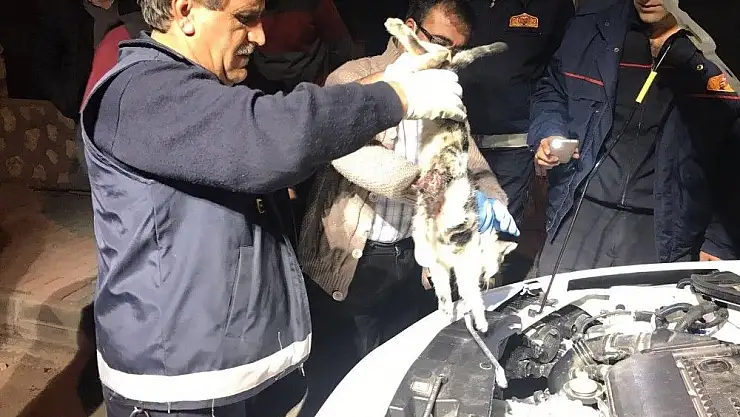 Servis ekipleri de aracın motoruna bağlı kabloları çıkardı fakat yine başarısız olununca olay yerine Adıyaman Belediyesi Veteriner Müdürlüğünde görevli ekipler geldi.