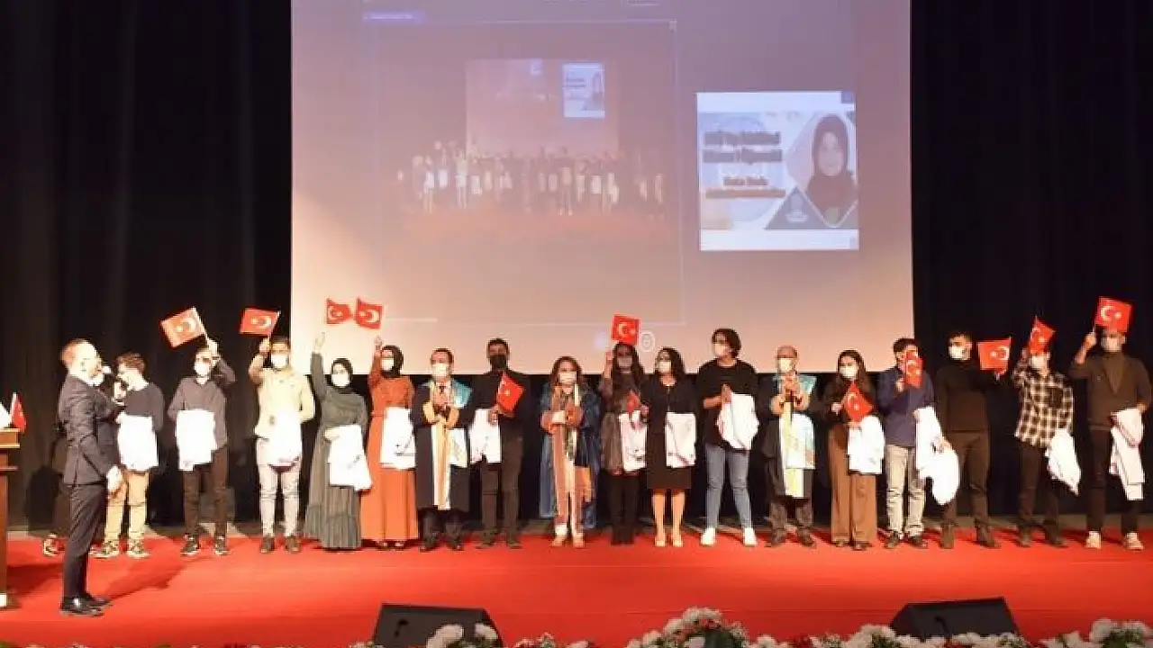 Tıp Fakültesi öğrencileri İstiklal Marşı´nın 100. yılı kutlamaları sebebi ile sahneye ellerinde Türk Bayrakları ile coşkuyla çıktılar.