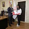 Konuşmasının ardından Kayhan, Avrupa Şampiyonu Eylül Aslan ile günün anlamına binaen hatıra fotoğraf çekinip çeşitli hediyeler verdi.